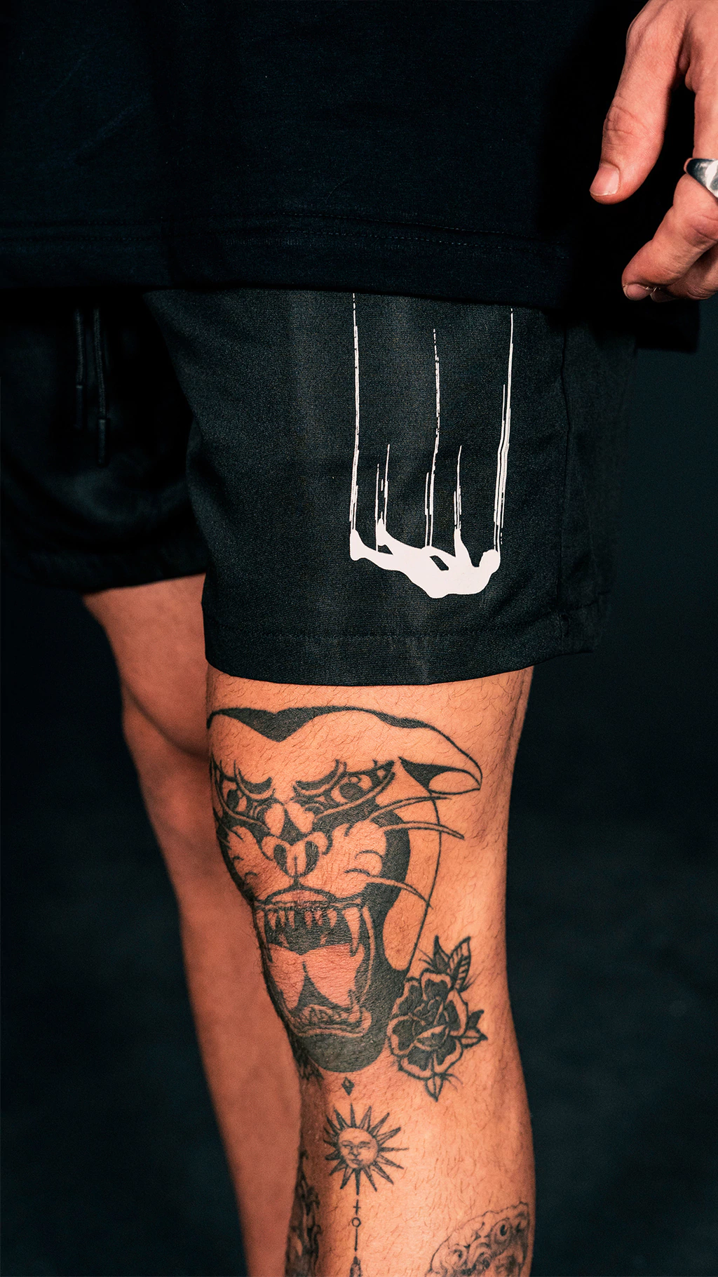 O short "Fallen" foi criado para acompanhar a camiseta de mesmo nome, apresentando a estampa da parte da frente em comum. Projetado com conforto e praticidade em mente, o short completa o conjunto coordenado, oferecendo uma opção estilosa e versátil para expressar a mensagem de luta e esperança presente na coleção.